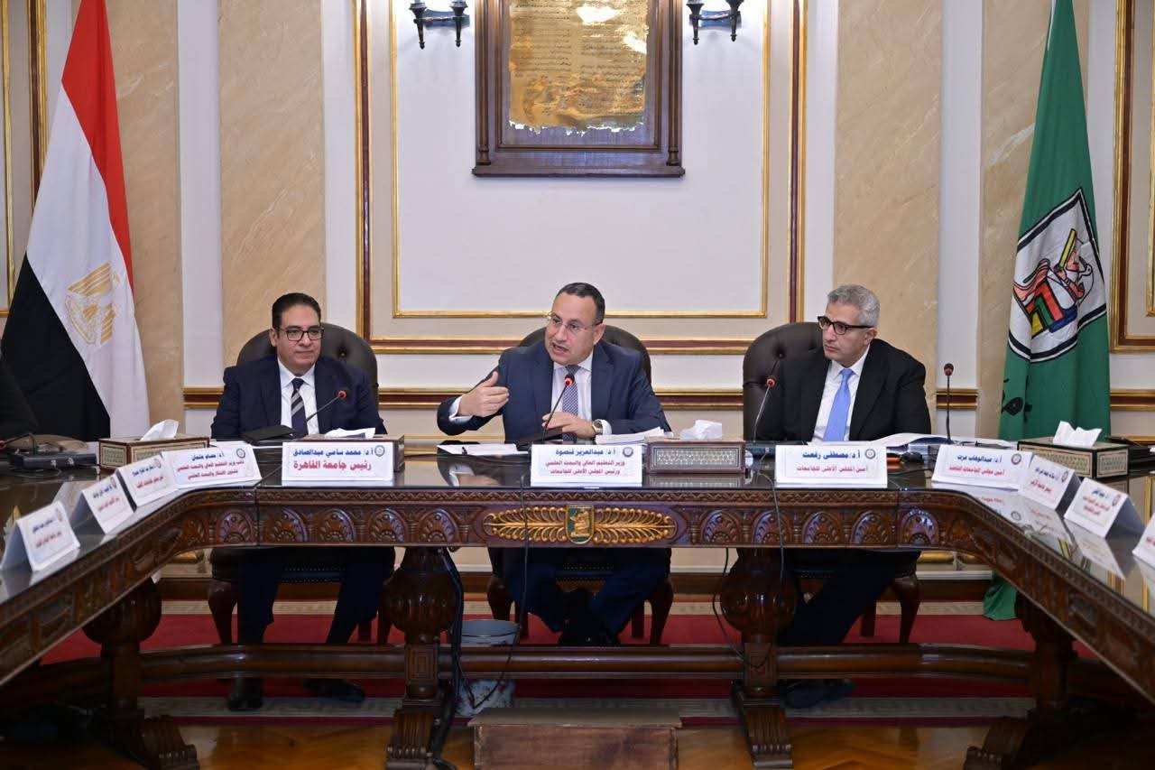في بداية الاجتماع، أكد الوزير أهمية التعاون في مواجهة كافة التحديات التي تواجه المنظومة التعليمية والبحثية في مصر، مؤكدًا ضرورة العمل الجماعي كفريق عمل واحد في التصدي للتحديات المختلفة التي تواجه الجامعات.