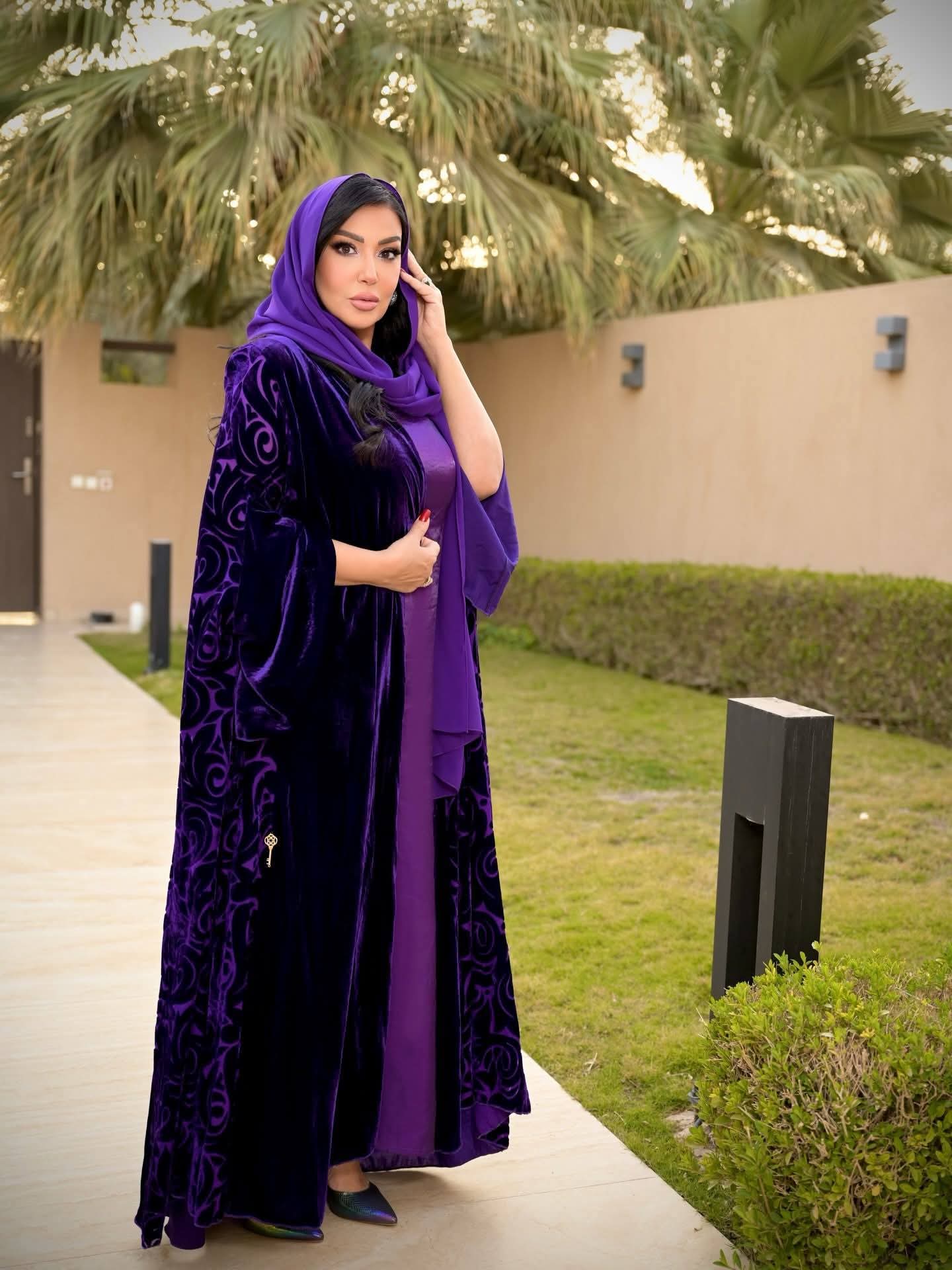 ظهرت “الخشاب” في الصور بإطلالة رمضانية أنيقة، حيث ارتدت عباءة باللون البنفسجي تميزت بتصميم يبرز جمالها الشرقي الأصيل، واعتمدت مكياجاً هادئاً يبرز ملامحها وتصفيفة شعر انسيابية نالت إعجاب متابعيها الذين أشادوا بأناقتها الدائمة وقدرتها على اختيار أزياء تتناسب مع المناسبات المختلفة.