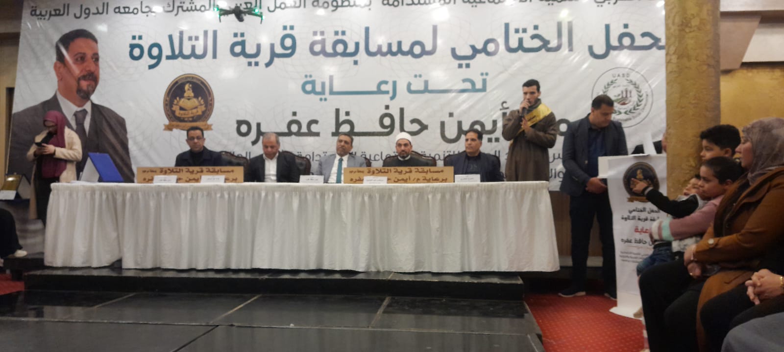اختتمت فعاليات الحفل الختامي لمسابقة “قرية التلاوة”، وذلك برعاية المهندس أيمن حافظ عفره نائب رئيس الاتحاد العربي للتنمية الاجتماعية المستدامة لشئون العلاقات العربية والدولية بمنظومة العمل العربي المشترك بـ جامعة الدول العربية، بقاعة نادي القضاة في طنطا على طريق الملاحة، في تمام الساعة الثانية عشرة والنصف ظهرًا.