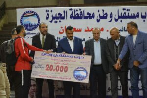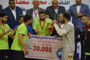 وعقب إطلاق صافرة حكم المباراة النهائية معلنةً فوز فريق إمبابة، منح نواب الحزب واللجنة المنظمة ميداليات تذكارية لحكام البطولة، وجائزة المركز الثالث لفريق كرداسة وشيك بنكي بقيمة 10000 جنيه مع الميداليات البرونزية، وفريق ماسترز الميداليات الفضية وجائزة مالية قدرها 20000 جنيه، وجاءت لحظة التتويج بمنح لاعبي فريق إمبابة كأس البطولة والميداليات الذهبية وجائزة مالية 30000 جنيه.