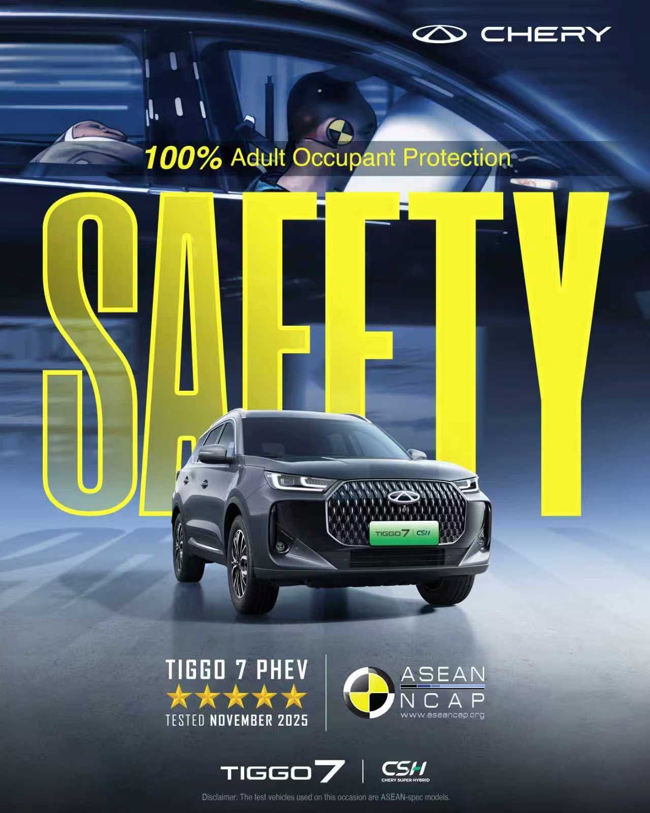 واللافت أن TIGGO7 حققت العلامة الكاملة في فئتي حماية الركاب البالغين وأنظمة المساعدة على السلامة، لتصبح حاليًا السيارة الهجينة القابلة للشحن الخارجي الوحيدة التي تحقق علامة كاملة مزدوجة في هاتين الفئتين. ولمواكبة طبيعة حركة المرور المعقدة في جنوب شرق آسيا، التي تتسم بالكثافة الكبيرة للدراجات النارية وتدفق الحركة المرورية المتغير باستمرار، جُهزت السيارة بنظام المساعدة الذكية للقيادة من المستوى L2+ مع تحسينات متقدمة في نظام مراقبة النقاط العمياء والتنبيه بحركة المرور الخلفية المتقاطعة. وتعمل هذه الأنظمة تلقائيًا عند سرعة تتجاوز 15 كم/س، بما يسهم في تقليل مخاطر الاصطدام أثناء تغيير المسار أو فتح الأبواب.