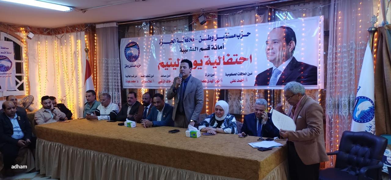 نظمت أمانة حزب مستقبل وطن بالطالبية احتفالية خاصة بيوم اليتيم بحضور عدد كبير من الأطفال تلقوا الهدايا واستمتعوا بالفقرات الفنية والاستعراضية التي تمام تقديمها خلال الاحتفالية التي أقيمت برعاية الدكتور محمد عودة أمين القسم، والمهندس علاء سرور أمين التنظيم، والدكتور خالد الزغبي، الأمين المساعد وامينة المرأة نور الهدى عصام، واحمد علي أمين العلاقات الحكومية، وأدهم عبد الحميد أمين الإعلام.