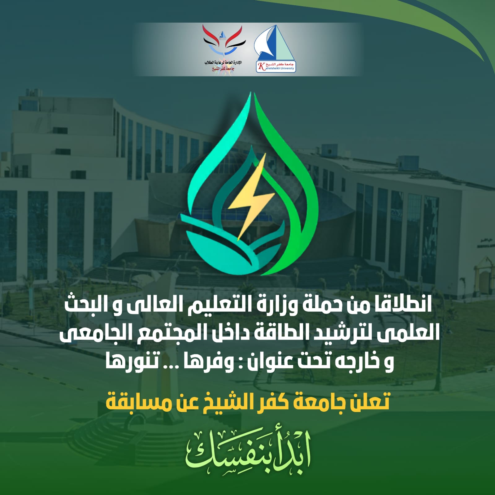 في إطار توجهات الدولة المصرية نحو تعزيز كفاءة استخدام الموارد ومواجهة التحديات العالمية في مجال الطاقة، وتنفيذًا لتوجيهات الدكتور عبد العزيز قنصوة وزير التعليم العالي والبحث العلمي، وتحت رعاية الدكتور يحيى عيد رئيس جامعة كفر الشيخ، وإتساقاً مع مباردة وزارة التعليم العالي والبحث العلمي “وفرها تنورها”، تعلن جامعة كفر الشيخ عن إطلاق مبادرة “إبدأ بنفسك” لترشيد الاستهلاك داخل الحرم الجامعي وخارجه بين طلاب وكليات الجامعة.