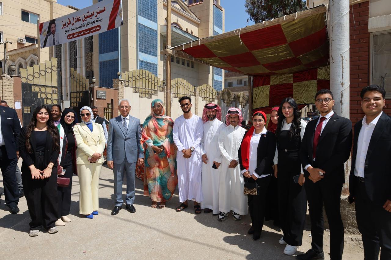 وضم الوفد الدكتور أيمن حسانين، نائب رئيس الجامعة لشئون خدمة المجتمع وتنمية البيئة، والدكتور مصطفى محمود، نائب رئيس الجامعة لشئون التعليم والطلاب، والدكتور حسام شوقي، نائب رئيس الجامعة لشئون الدراسات العليا والبحوث، إلى جانب، وعددٍ من القيادات الجامعية، ود. حسام عبد الرحيم، منسق عام الأنشطة الطلابية، وأ.د/ وليد عبد القوي مدير عام رعاية الطلاب، وأ. إيمان حمدي مدير إدارة الوافدين، فضلًا عن مشاركة طلاب الجامعة وممثلين عن الطلاب الوافدين، تأكيدًا على الدور التربوي والوطني الذي تضطلع به الجامعة في غرس قيم التعايش وقبول الآخر لدى شبابها.