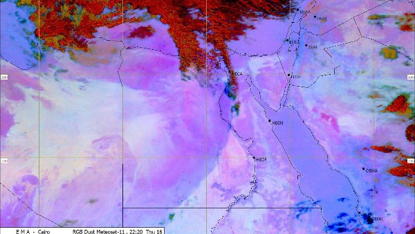 ومن المتوقع نشاط رياح تتراوح سرعتها من (40 إلى 50) كم/س، تكون مثيرة للرمال والأتربة على أغلب الأنحاء، وقد تؤدي إلى تدهور الرؤية الأفقية إلى أقل من 1000 متر على بعض المناطق، وقد يصاحبها هبات للرياح تتراوح سرعتها من (60 إلى 70) كم/س على بعض المناطق علي فترات متقطعة.