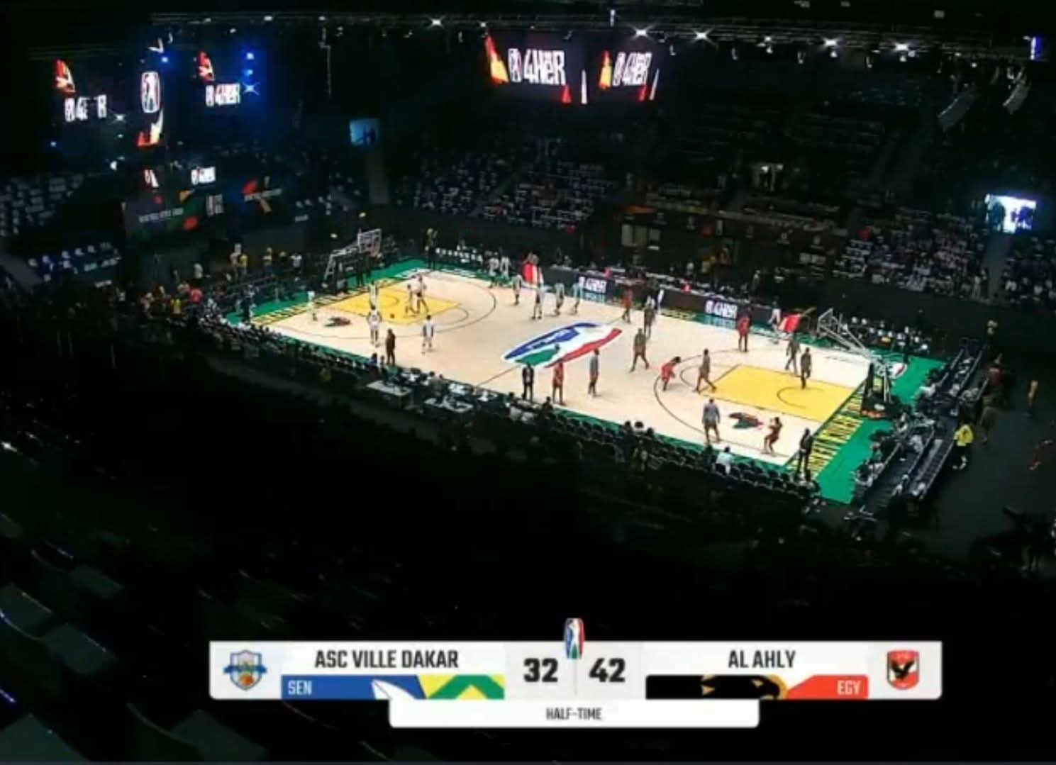 أنهى الفريق الأول لكرة السلة بـ النادي الأهلي النصف الأول من مباراته أمام فريق داكار السنغالي بتقدم مستحق بنتيجة (٤٢ – ٣٢)، في اللقاء الذي يجمعهما حالياً بمدينة الرباط المغربية، ضمن منافسات بطولة إفريقيا للأندية للأبطال (BAL).