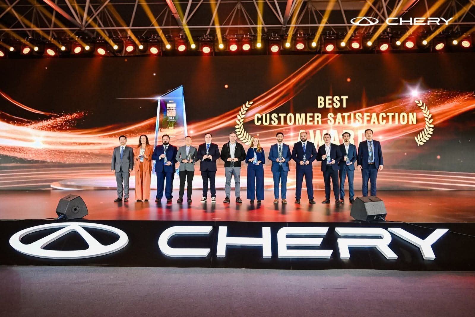 وقام بتسليم جائزة أفضل تعاون كل من Gao Xinhua، المدير التنفيذي للتكنولوجيا بشركة شيري أوتوموبيل، وZhang Guibing، الرئيس التنفيذي لشيري إنترناشونال، فيما شارك Zhang Guozhong، النائب التنفيذي لرئيس شيري أوتوموبيل، في تقديم جائزة اختراق الحصة السوقية.