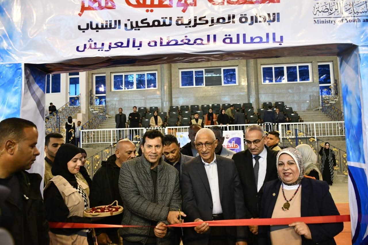 افتتح الدكتور أشرف صبحي، وزير الشباب والرياضة، يرافقه اللواء أركان حرب الدكتور خالد مجاور، محافظ شمال سيناء، فعاليات ملتقى توظيف مصر – شمال سيناء، والذي تنفذه وزارة الشباب والرياضة من خلال الإدارة المركزية لتمكين الشباب، بالصالة المغطاة بمحافظة شمال سيناء، وذلك ضمن الجولة التفقدية التي يقوم بها الوزير لمتابعة المشروعات والأنشطة الشبابية والرياضية افتتاح عدد من المنشآت بالمحافظة.