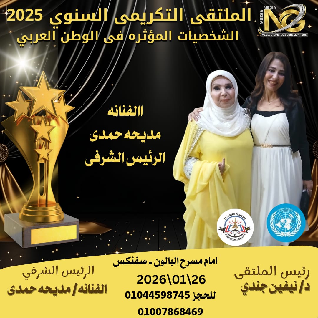 برئاسة شرفية من الفنانة القديرة ممثلة السنيما والدراما المصرية والعربية  مديحة حمدي
