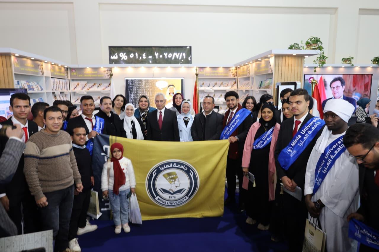 برئاسة وحضور الأستاذ الدكتور عصام فرحات، رئيس جامعة المنيا، شارك وفد طلابي من طلاب الجامعة، يضم طلاب الاتحادات الطلابية، والطلاب المتميزين في الأنشطة، والطلاب الوافدين، وذوي الإعاقة، في زيارة معرض القاهرة الدولي للكتاب في دورته السابعة والخمسين لعام 2026، والمقام بمركز مصر للمعارض الدولية بالتجمع الخامس، في إطار حرص الجامعة على دعم الوعي الثقافي والمعرفي لدى طلابها وتعزيز مشاركتهم في الفعاليات الوطنية الكبرى.