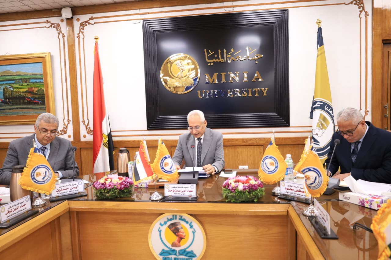عقد مجلس جامعة المنيا اجتماعه الدوري برئاسة الدكتور عصام فرحات رئيس الجامعة، وذلك لمناقشة عددًا من الملفات المهمة التي تستهدف تعزيز مكانة الجامعة وتطوير خدماتها الأكاديمية والبحثية.