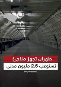 أفاد رئيس منظمة إدارة الأزمات في طهران علي نصيري لقناة “SNN”، أنه سيتم استخدام أكثر من 300 مبنى تحت الأرض، بما في ذلك مواقف السيارات ومحطات المترو، كملاجئ لسكان العاصمة الإيرانية.