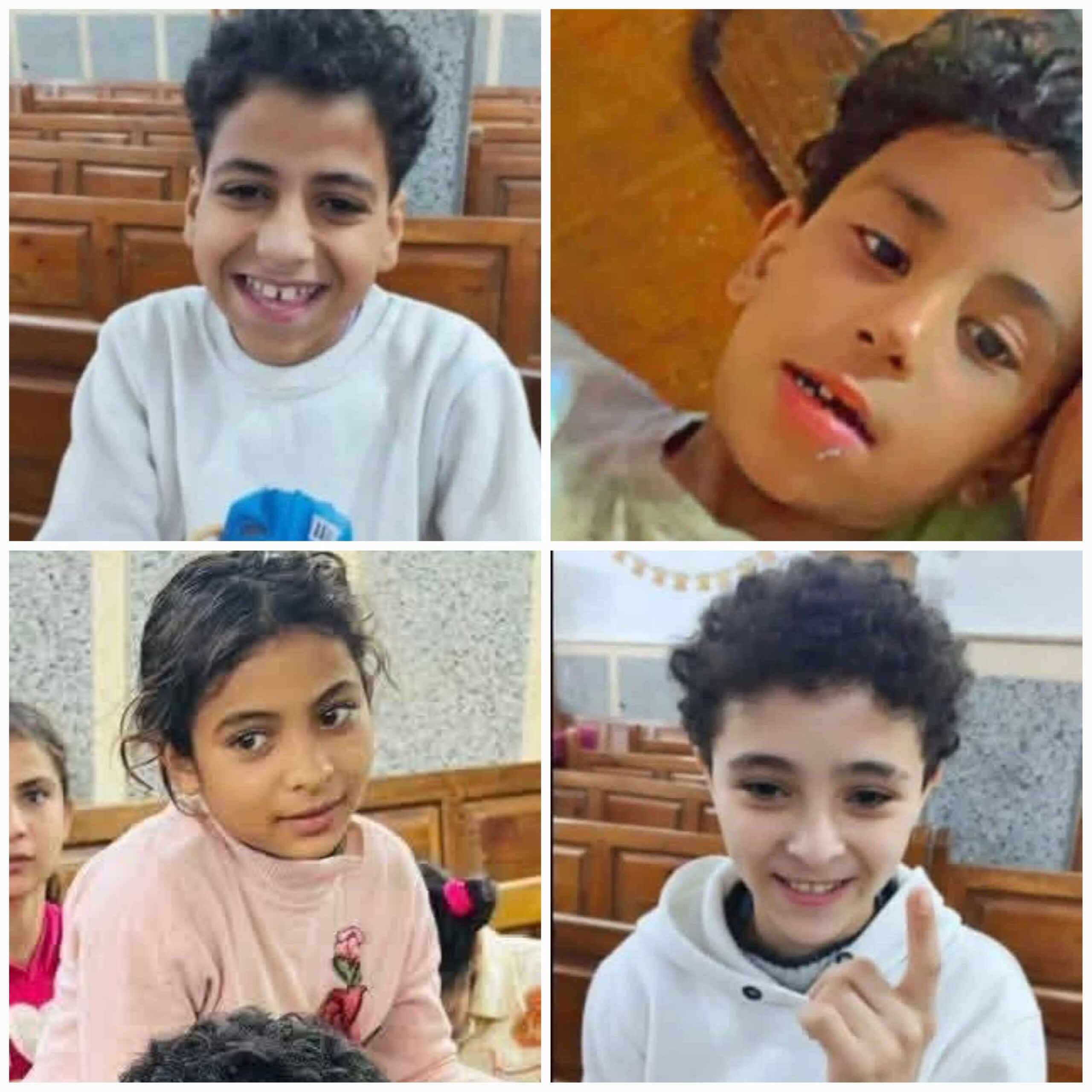 بدر شنودة حنا (7 سنوات)، تواضروس بدر حنا (10 سنوات)،نادية أشرف يونان (11 سنة)