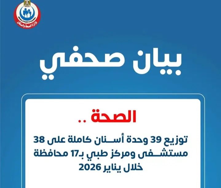 كتب.مصطفى عبيد أعلنت وزارة الصحة والسكان، افتتاح وتشغيل عدد من أقسام وعيادات الأسنان في المنشآت الطبية التابعة لها خلال يناير 2026، في…
