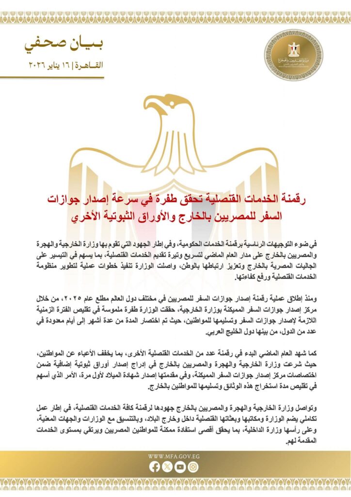 كتبت سحر مهني في ضوء التوجيهات الرئاسية برقمنة الخدمات الحكومية، وفي إطار الجهود التي تقوم بها وزارة الخارجية والهجرة والمصريين بالخارج على مدار العام…