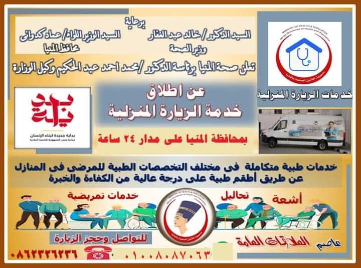 ضمن مبادرة “بداية” صحةالمنيا تطلق خدمات الزيارة المنزلية لتقديم الخدمات الصحية للمواطنين بالمنازل