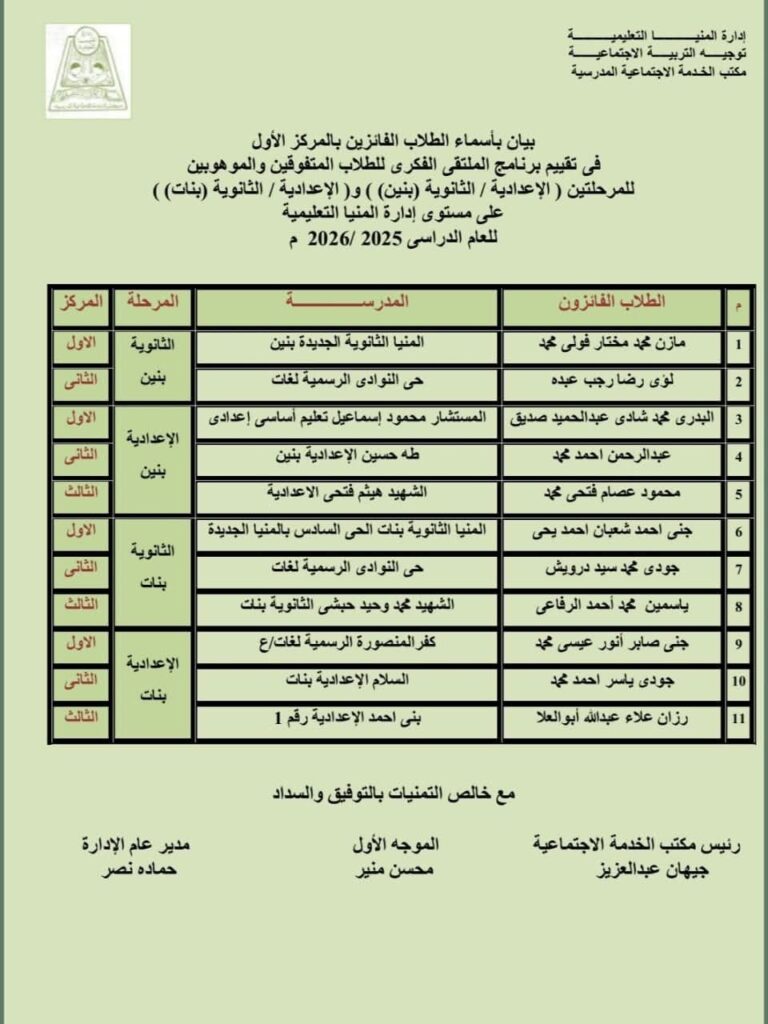 جمال المنياوي تحت رعاية وكيل الوزارة صابر عبد الحميد زيان، وعماد الدين محمود وكيل المديرية، وحمادة نصر مدير عام إدارة المنيا التعليمية، وقيادة الموجه…