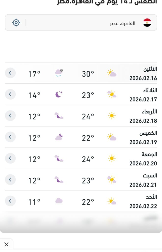 كتبت سحر مهني أعلنت الهيئة العامة للأرصاد الجوية عن توقعاتها لحالة الطقس غداً الثلاثاء 17 فبراير 2026، حيث تشهد العاصمة القاهرة انخفاضاً ملحوظاً في…