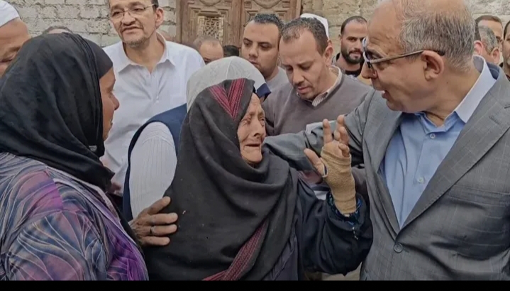 صورة بألف كلمة.. (جبر الخواطر بين محافظ المنيا وسيدة مسنة)